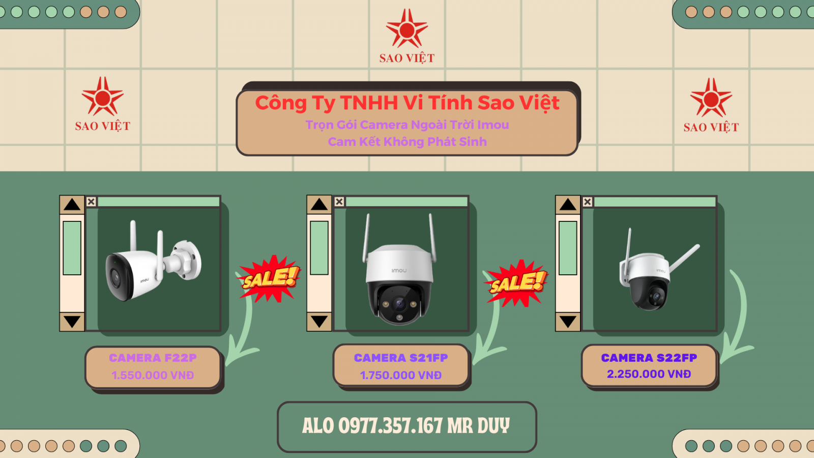 Là một trong những đơn vị chuyên cung cấp cho khách hàng của chúng tôi những sản phẩm camera ip wiffi giá rẻ ở Hóc Môn với giá thành cực kỳ cạnh tranh cùng với chất lượng sản phẩm vượt trội trên thị trường hiện nay. Ngoài ra, dịch vụ lắp đặt camera tại hóc môn của Vi Tính Sao Việt còn giúp quý khách hàng được trải nghiệm ngay sản phẩm camera ip wiffi giá rẻ ở Hóc Môn cao cấp để giúp khách hàng có thể tăng cường khả năng giám sát từ xa, đảm bảo an ninh tại những nơi cần thiết như nhà riêng, phòng làm việc, nới kinh doanh.... với tầm quan sát từ 10 đến 30 mét cùng ống kính hồng ngoại thông minh giúp đem lại cho người dùng những trải nghiệm sản phẩm tốt nhất hiện nay. Chính vì thế, hãy đón xem ngay bài viết dưới đây của Vi Tính Sao Việt để có thể nắm được một cách tổng quan nhất về những thông số kỹ thuật cùng những giá thành ưu đãi của công ty với khách hàng với dịch vụ Trọn Gói Camera IP Wifi Giá Rẻ Huyện Hóc Môn